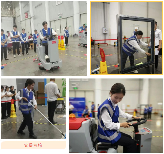 保潔組·蔣蘭蘭 & 羅瑩: 在緊張的理論考核后,兩位選手在玻璃清潔、塵推使用等多個(gè)保潔實(shí)操項(xiàng)目中動(dòng)作規(guī)范、流程*,更在《洗地機(jī)一級(jí)保養(yǎng)及常見問題處理》的抽簽問答環(huán)節(jié)對(duì)答如流。其中,羅瑩憑借穩(wěn)定發(fā)揮榮獲保潔組十佳,二人的專業(yè)素養(yǎng)均獲得了裁判的一致好評(píng)。